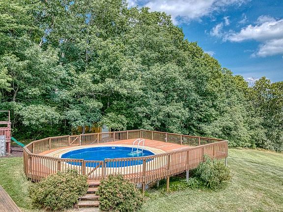 Come check out this stunning three-bedroom two and one half bath home nestled on 4 plus acres in the blue ridge mountains in Bland county Virginia. Entering the home you will find a large living area with a cathedral ceiling, hardwood floors, and a gorgeous rock fireplace as the focal point. Continuing on the main level you will find a spacious kitchen that opens up to a dining room and breakfast nook, a large master suite that features a jetted tub in the bath. Upstairs you will find a beautiful balcony overlooking the living room a sitting area, two bedrooms, and a full bath. The downstairs is partially finished and a great place to relax and unwind in the evenings with friends and family. From the deck, you will find breathtaking views and you can definitely enjoy your above-ground pool in the summertime. You better call soon on this one or it will be gone.