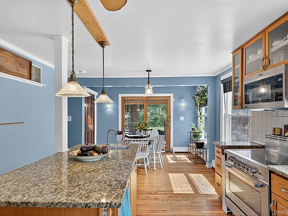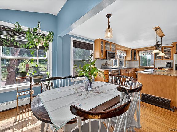 Sit back and relax on the front porch while enjoying the scenic view of the farmland and picturesque sunsets. This historic three-bedroom farmhouse is situated on 2.1 acres and features a large barn, an in-ground swimming pool, a basketball court, gardens, and fruit trees. The kitchen offers granite countertops, ample cabinet space, a large pantry, stainless steel appliances, and a center island with a wet bar. A breakfast nook with French doors leads to a deck that overlooks the 20x40 in-ground pool, perfect for entertaining. The spacious living room features a wood-burning stove and provides lovely views of the farm. The formal dining room also has French doors that open into a sunroom. The charming first-floor bathroom is equipped with a claw-foot tub. The primary bedroom is filled with natural light from numerous windows and skylights, and it boasts a vaulted ceiling with a loft area. Additionally, there is a custom bathroom with laundry facilities on the second floor, featuring a skylight and a jacuzzi tub, along with two more nicely-sized bedrooms. An attic provides extra storage space, and hardwood floors lend warmth and elegance throughout the home. The large barn includes a two-car garage, a workshop, and plenty of storage. There is incredible potential to transform this barn into an amazing space! This home also has solar panels to save on energy costs. Conveniently located nearby are shopping, schools, restaurants, farms, wineries, and breweries. Commuters will appreciate the proximity to Route 17 and public transportation. This could be your new home for the holidays!
