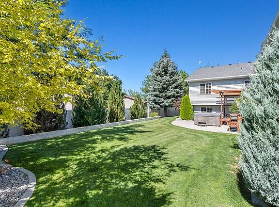 Absolutely adorable, turn-key home situated on a cul-de-sac! From outside you will be impressed with the gorgeous entryway, huge windows, & high-end landscaping. Not only does this home possess a 2 car, attached garage, BUT on the other side of the lot is a custom 4 car garage big enough to hold all the toys! "DREAM Garage" features high ceilings, 220 power, bath, utility sink, work bench, large storage closets & epoxied floors. Adjacent to the 4-car garage is RV/Boat parking with hookups for power, water & dump station! Property is completely surrounded by vinyl fencing! Upon entry you will find gleaming oak wood floors, spalted maple laminate, silestone counter, 5" molding, new matching rocker light switches throughout, all hinges & knobs matching in brushed nickel, newer faucets, newer toilets, tankless water heater & water softener. Primary suite is attractive with a vaulted ceiling, 2 walk-in closets, a large, en suite bath with deep soak, spa tub & separate shower. All guest beds are tastefully decorated with built-in shelving inside each closet. Daylight basement allows for so much natural light! Here you will find a side door that takes you outside to the lushly landscaped yard & hot tub! 5 short steps down from the basement is a large BONUS ROOM that is perfect for storage! A MUST SEE!