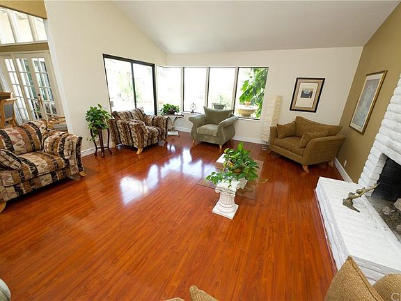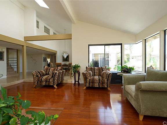 Wonderful John Lyttle built 3 Bed 3 Bath pool home in the hills of Orange. View of hills and city lights. Lives mostly like a single level with Master and one other bedroom on the main level and the entire upstairs is another bedroom and bath. Each bedroom has direct access into its own bathroom. All bedrooms are sizable. Main floor Master suite with two large walk-in closets and a stunning master bath with separate multi jetted shower and two person sized spa tub. Private pool and spa with views of valley, mountains and city lights. The home is nicely appointed with custom travertine and wood flooring, granite counter tops, modern furnishings and custom paint. Located at the top on a private drive. No neighbors across the street just nature. Formal dining room, large living room with fireplace, kitchen dining area, separate family room with fireplace. The second level is another bedroom suite with its own bath, balcony and walk-in closet. Pool and Spa make this home a paradise. The wall of windows along the back of the home shows off the gorgeous view Home is priced to sell. Come and see this house today.