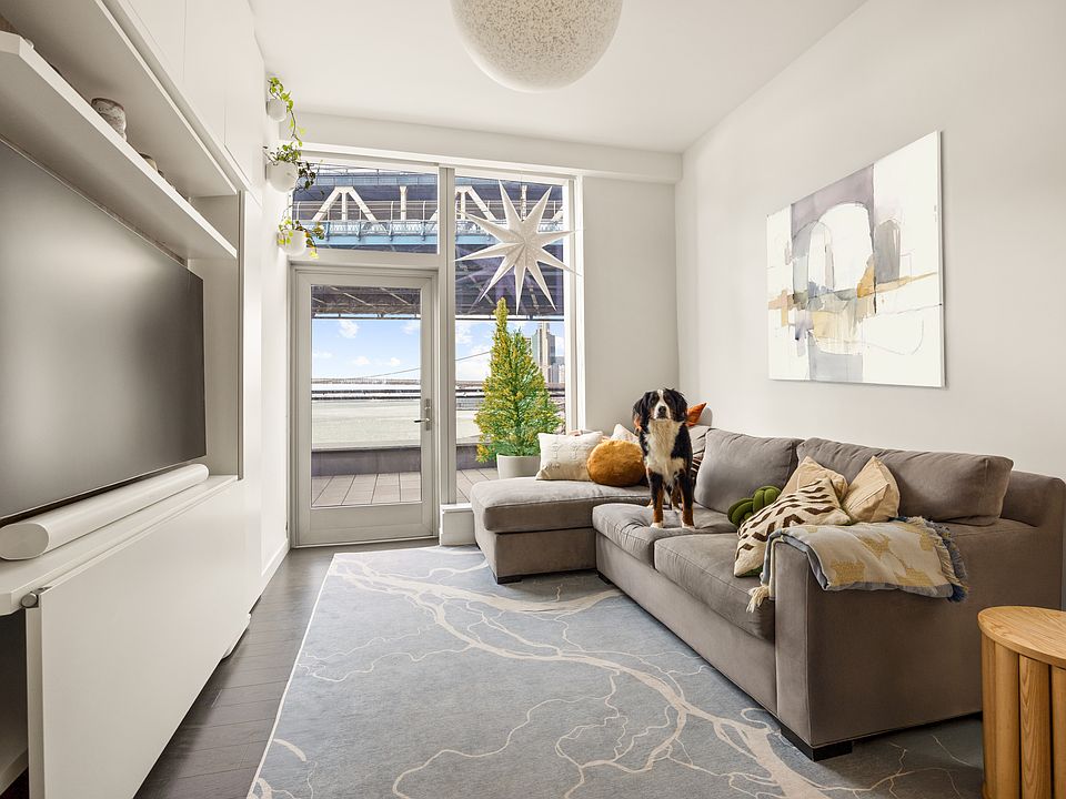 This south facing one bedroom residence combines modern luxury with a level of private outdoor living that is exceptionally rare. As one of the very few homes in the building that feature an expansive private terrace, this residence offers a coveted indoor and outdoor lifestyle and features 1,100 square feet of total living space. Positioned on the seventh floor with a commanding view over the Manhattan Bridge, the home enjoys sweeping panoramic views across the East River, the Brooklyn Bridge, and Downtown Manhattan.