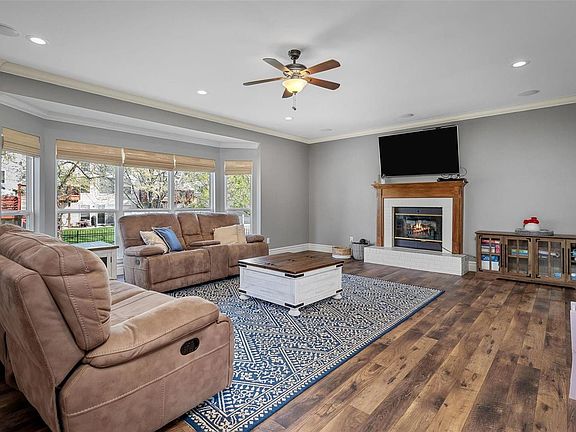 Absolutely stunning home with finished lower level, 2 fireplaces, astoundingly huge rooms and preferred updates throughout. Resting between the living and dining rooms, the striking 2 sty entry foyer grabs your attention from the moment you step in. With granite counters, 42" custom cabinetry, butlers pantry, a walk-in pantry and large center island, the grand kitchen is definitely the heart of the home. Exceptionally large vaulted primary suite has dream organized closet and extravagant bath with dual vanities, large corner tub, shower with designer sliding doors and linen closet. The finished lower level extends your living space with a rec room, work/study area, family room with fireplace and wet bar complete with dishwasher and refrigerator. Secondary bedrooms have organized closets, Loft with built-ins, Coffered dining room ceiling, Organized MFL, paver patio, fenced yard, dual system HVAC, water softener, irrigation system, built-in speaker system. Subdivision pool.