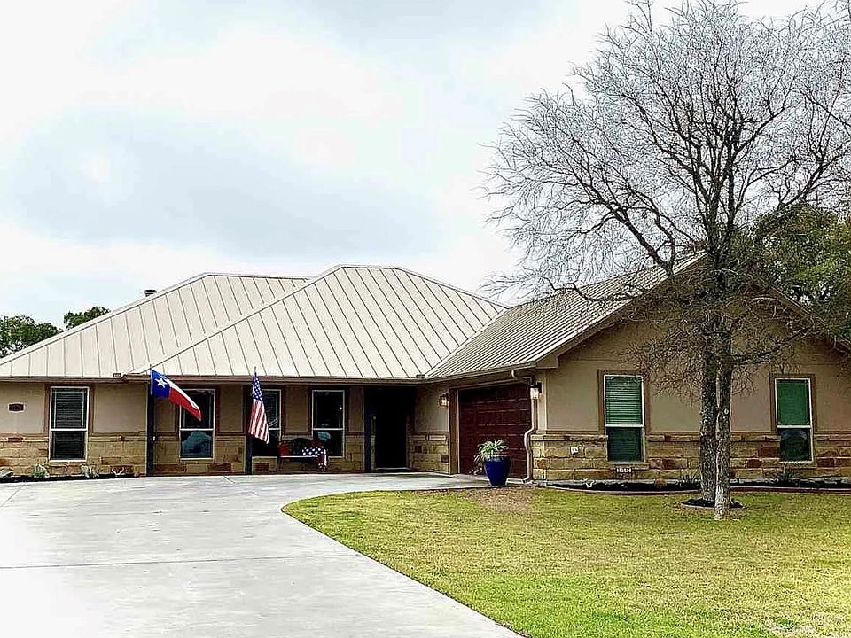 Beautiful 3-bedroom, 2-bath Hill Country custom home located in the sought-after Ranch of Delaware Creek community in Burnet, TX. This 2074 sq. ft. residence sits on a spacious .374-acre lot and backs to a quiet greenbelt where you can relax and feed deer from your own yard. The open-concept floor plan features expansive windows that flood the home with natural light. A striking stone fireplace serves as the centerpiece of the living room area. The kitchen has an abundance of cabinet space to store all your culinary essentials. You will love the spacious master suite and comfortable layout. The master bath features dual vanities and an enormous closet. Each bedroom is generously sized. Live simply. Live beautifully. 252 Sunday Dr is ready to welcome you home.