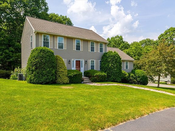 Here is the beautiful 3 bed, 2.5 bath colonial in a gorgeous, sought-after neighborhood that you've been waiting for! The first floor is perfect for entertaining with an eat-in kitchen, formal dining room, and massive fireplaced living room! Slider doors in the kitchen open to your large deck that overlooks a private back yard abutting conservation land and trails. The second floor offers three generously sized bedrooms including a walk-in closet and attached bathroom in the primary suite. There is an additional 760 sq ft in the lower level that would be perfect to finish as there are full sized windows and plenty of space! This well-cared for home offers hardwood floors, a remodeled kitchen, brand new roof, gas heating system, central ac, irrigation system, an exterior french drain system, and much more!