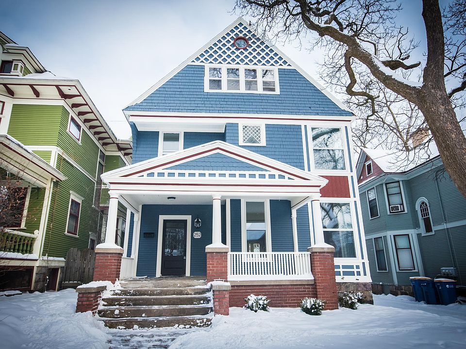 Complete remodel of entire house from the wide open finished third floor with full bath to the spacious basement area with state of the art finishes, granite countertops, kitchen cabinets, appliances, new master suite, soaking tub, new upstairs laundry room, new paint inside and out, two new furnaces and HVAC units, new windows, new French doors off kitchen to a deck, all new electrical and plumbing throughout house plus much more. Master suite has large sitting room with fireplace leading intolarge bathroom with rain soaker shower and private lavatory room , soaking tub, heated tile floors and walk in closet. Two more bedrooms on second level and new tile bath and tub/shower unit along with granite countertops on double vanity. Large laundry room on second floor. Main level bedroom and full tile bath and tile floors. Large mud room with lots of storage. New kitchen with granite countertops and large pantry with new French doors opening out to a new deck and stairs to the back yard.