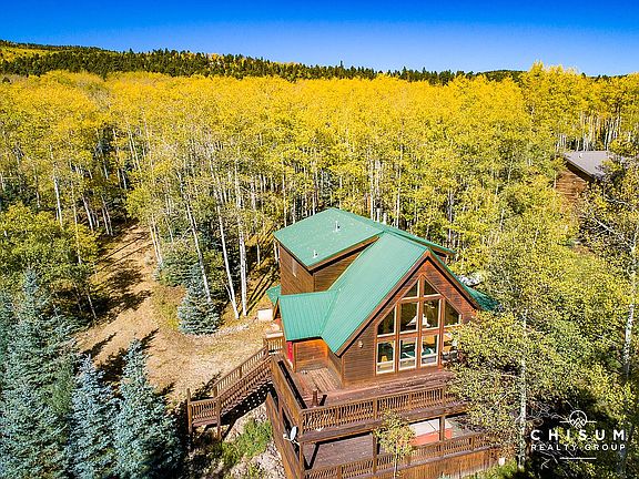 Have you ever wanted that home, the one you can't see from the road, with the curvy driveway hidden by an Aspen grove? A home that is a true getaway where you can relax and play in nature? If so, come discover 252 Via del Ray. Located on over two beautiful acres with a seasonal stream and views of Angel Fire Resort's ski mountain! The redwood sided home lets you embrace nature with its 810 square feet of deck space and a lower deck that's perfect for a hot tub. Inside you'll find a quality built chalet with an impressive great room,featuring a 2 story window wall, vaulted aspen ceilings, a gas fireplace and mountain maple hardwood floors. The kitchen is spacious and features 2 pantries and granite tile counter tops. A large bedroom, bathroom, and laundry room with slate tile flooring are also on the main level. Upstairs is an impressive master bedroom suite with private patio, double sided gas fireplace and vaulted ceilings. The ensuite bath is large with a jetted tub, separate shower and a his and hers dressing area. The lower level has the 3rd bedroom, bonus room that could support a small kitchen and a separate entrance making it a great "mother-in-law" suite or rental apartment. What we love about this home is the light and bright feel with its large windows, soaring ceilings, and radiant in-floor heating throughout. It includes a 3-car garage with 2 full size bays and 1 smaller bay for your golf cart or OHV. This home comes mostly furnished and ready to enjoy.