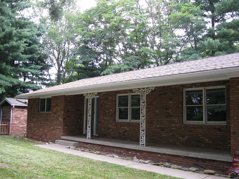Looking for privacy and convenience? Over 1/2 acre wooded lot, there is a solidly built brick ranch house that has just had a total redo. Starting with the new roof, and every room painted with a fresh coat of paint, new stainless steel appliances, new washer and dryer, new flooring and all of this tucked away smack dab in the middle of town. Walk to the library, drug store, post office, Historic Public Square and still enjoy your privacy. This little gem is tucked away and barely visible to neighbors. That means if they can't see you-you can't see them. Want a garden? There's room. There is even a brick storage building to hold all of your tools.