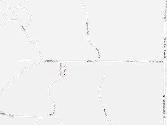 Nice location on South Side of Hubbard Lke wooded 3+ acres high and dry. Mobile home with well and septic, paved driveway. Mobile hasnt been lived in over 20 years (Uninhabitable). Selling as is where is. Title to mobile is included.