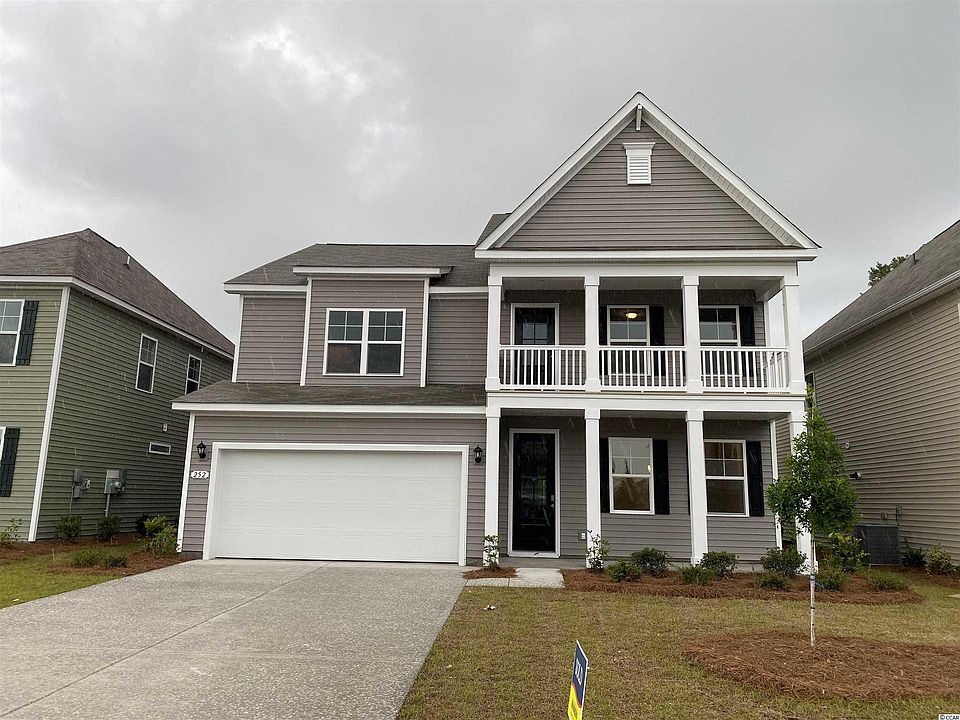 This popular plan brings functionality and style together! Incredible curb appeal with stacked front porches and tall entry door with glass. Once inside, wide plank laminate wood flooring creates an inviting space and numerous windows bring in fantastic natural light. Off the entry is a spacious flex room that would make a great home office or formal dining room. The large gourmet kitchen boasts modern gray painted cabinetry, granite countertops, an oversized island with breakfast bar, stainless Whirlpool appliances, and a walk-in pantry. Spacious bedroom and full bathroom on the first floor are perfect for guests visiting you at the beach. Upstairs you will find the grand primary bedroom suite with a sitting room, huge walk-in closet that connects to the laundry room, and en suite bath with large separate vanities, linen closet, and walk-in shower. This home will also feature a spacious rear screen porch and is located in a brand new natural gas community in Carolina Forest! The Parks of Carolina Forest is a picturesque setting of ponds, an amazing amenity center, and park of the majestic "Ten Oaks" with a walking trail to get to the Carolina Forest library. *Photos and virtual tour are of a similar Harbor Oak floorplan. (Home and community information, including pricing, included features, terms, availability and amenities, are subject to change prior to sale at any time without notice or obligation. Square footages are approximate. Pictures, photographs, colors, features, and sizes are for illustration purposes only and will vary from the homes as built. Equal housing opportunity builder.)