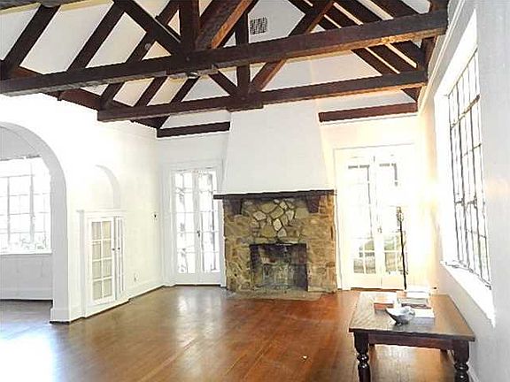 Stunning architectural gem built by the Hutchens architecture firm. Home is on a very sought after oak canopied street. Living room features a 19' vaulted ceiling with hand hewn beams. Fireplace is Carolina river stone, on each side are twin doors opening to a screened side porch. Classic archway flanked by built-in bookshelves separates living room from dining room. Kitchen is updated, 2 bedrooms and 2 baths downstairs. Upstairs has a bedroom and sitting room, half bath, and lots of closet/storage. 2 car detached garage. Tankless hot water heater.