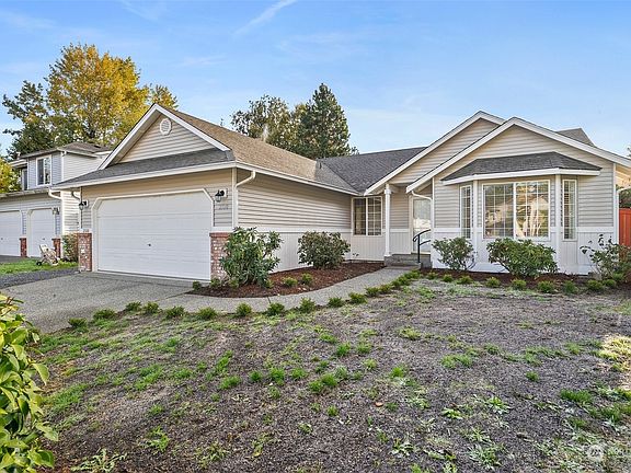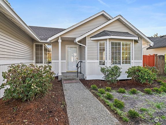 This move-in ready rambler, located in a serene cul-de-sac, offers a spacious 1,544 sqft open floor plan with 3 beds and 2 full baths. Recent updates include new fence, new flooring, fresh interior paint, modern light fixtures, and upgraded stainless steel appliances. The vaulted ceilings, kitchen with an island, gas fireplace, and primary with a walk-in closet and double sinks in the en-suite make this home truly inviting. Outside, you'll find an oversized patio, hot tub ready, in a fully fenced backyard with beautiful terracing, perfect for outdoor gatherings. Located minutes to PAE airport, Boeing Everett Freeway and 405 this home is close to everything! It's a harmonious blend of comfort and function. $15,000 credit for rate buy down!