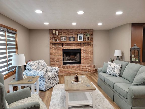 Custom built Ranch style home on a large lot. UGSP on own well. Inviting covered front porch leads you into the open concept living room with a woodburning fireplace. Beautiful updated kitchen and dining room features LVP flooring and soft close kitchen cabinets, touchless faucet and Cambria Quartz countertops. Master bedroom with walk-in closet and master bath with step-in shower. Family room. Sunroom was added in 2007 with gorgeous wood ceiling and walls. Lots of windows offer a great spot to relax and enjoy Fall & Winter. Deck and secluded patio area for privacy. Detached garage with alley access makes a great area for hobby and additional storage. Property is beautifully landscaped.