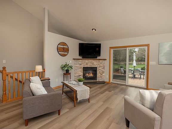 This gorgeous rambler nestled on just under .6 an acre has it all! Main floor living at its finest with 3 bedrooms on the main floor including a primary bedroom with private bath and laundry & another large bedroom and multipurpose room in the basement. The open floor concept and vaulted ceilings along with lots of natural light make for a grand and inviting living area. The new kitchen light fixtures and stunning backsplash compliment the updated stone fireplace and new plank vinyl flooring in the livingroom. The beautiful patio and firepit surrounded by professionally landscaped mature bushes and trees make for the perfect space to spend a relaxing evening. Newly finished detached heated garage. Many updates including: new roof 2023, furnace & ac 2022 and an invisible fence.