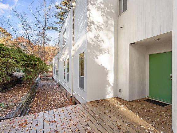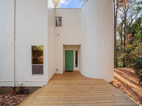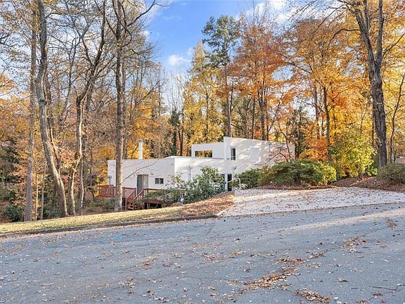 Modern home design emphasizes clean lines and geometric shapes. Architect Wesley A. McClure, graduate of NC State University and owner of McClure Design Group out of Raleigh designed this house built in 1976. It holds true to the modern home definition. A semi-circle staircase to the right of the foyer takes you to upper level bedrooms. There is lots of natural light throughout this design. The living and dining areas have views to the front yard as well as the back deck and beyond. Cozy den with fireplace has views of the wooded back yard. The house wraps around the deck on three sides with sliding glass doors. The deck has a gas fire pit and a wall of mature azaleas. The kitchen has its own set of sliding glass doors to an exterior walkway and storage closet. Situated nicely on a cul de sac in a neighborhood that borders Wake Forest University campus. Whole house generator. Pictures speak a thousand words! Take a look.