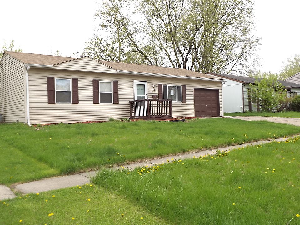 So cute! Totally remodeled 3 bedroom ranch with 1 bonus room, and a large family room with wood burning fireplace. Small office space off family room adjacent to patio doors leading to a spacious back yard. Could be a good space for small home business. List of "News": all flooring, paint and trim, interior doors, Hot water heater, furnace motor, bath w/ new fixtures, counter tops, garage door opener and even the roof. Also, refinished kitchen cabinets, stove and fridge about 2 years old, some new windows. Larger than it appears as it goes further back on the lot. Washer and dryer hook up in closet off the bonus room off the garage. A/C, microwave, washer/dryer is not supplied with this home. All the hook ups are in place though. Fireplace burns wood and has a switch to circulate the warmth into the family room. Low taxes and move in ready. Easy show. Agents please read agent remarks. Thank you for showing.