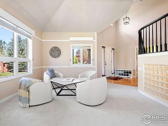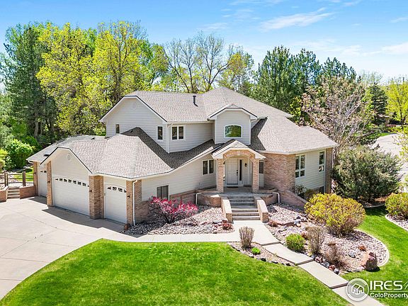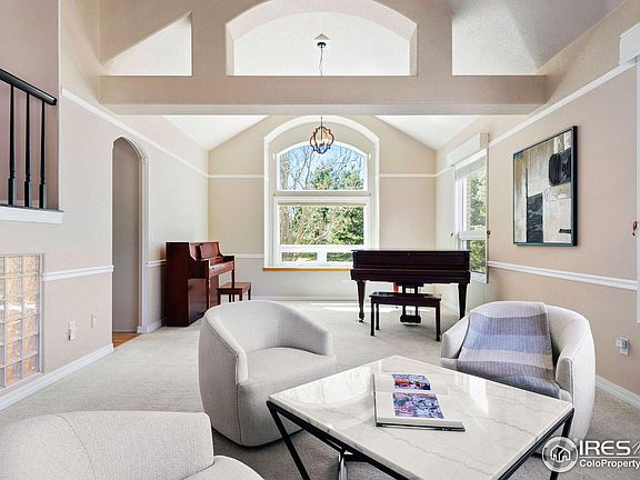 Beautiful home on a .43 acre lot in the gated community of Blue Heron Estates, with new roof, new exterior and interior paint, new hot water heater, solar panels and much more! As you step inside you are greeted with a grand entrance and a formal sitting room perfect for relaxing while others play the piano. On the other side of the staircase is a large office with built in shelfs and a large window adding plenty of light. As you continue into the main living space there is a step down living space complete with TV and Fireplace. The kitchen has black appliances to tie in with the black granite countertops, designer backsplash and is setup for entertaining with a large island and secondary prep kitchen or wet bar. Off the kitchen is an expansive addition which flows perfectly with the rest of the home, it can be a dinning room, TV room and sitting room. This space has so much natural light it really brings the outside into the home. On those beautiful Colorado days step out into the large backyard with mature trees that add shade and privacy. The updated main floor laundry/mudroom is conveniently located by the garage door which leads to an oversized 4 car garage large enough to fit 2 full size trucks/SUVs. Upstairs is the primary bedroom with a large sitting area and updated luxurious 5 piece ensuite bathroom that makes you feel like you are at a Luxury hotel. There are 2 secondary bedrooms large enough to have built in desks with a shared bathroom. The walkout basement has a large open recreation room, huge bedroom, full bathroom, workout room and a theater room. This home will not disappoint, come see why Blue Heron Estates is one of the most desirable neighborhoods in Boulder County that has a clubhouse, pool, pickleball/tennis court, playground and park with year round events for all ages!