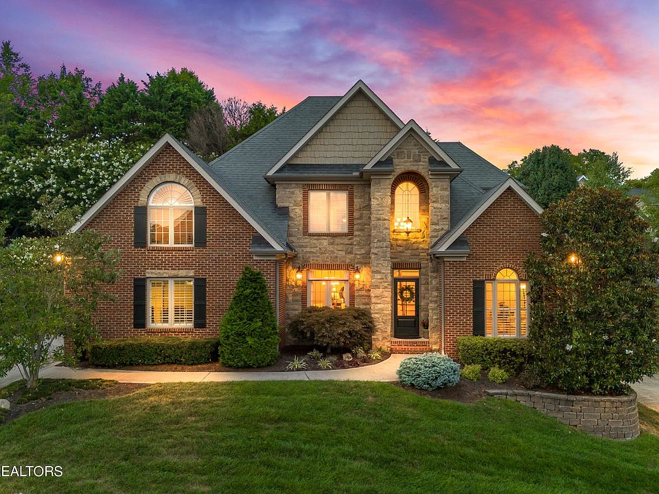 Your dream home has finally hit the market! This stunning 4 bed/ 4.5 bath home is nestled in the heart of the prestigious Glen of Hardin Valley subdivision, and is zoned for Hardin Valley Schools. This entirely brick and stone home will take your breath away with vaulted ceilings and beautifully maintained hardwood floors. The living room features an ornate stone, gas fireplace. The open floor plan makes this home perfect for spending time with family, and entertaining friends. The kitchen features high-quality wooden cabinets with a beautiful, rich tones that perfectly compliment the dark granite countertops, and stainless steel appliances. ALL kitchen appliances in this home convey, INCLUDING the refrigerator! The breakfast nook features large windows that flood the room with natural light, and overlook the gorgeous, landscaped backyard. For more formal meals, the dining room will suit your every need, featuring french doors overlooking the front yard, and adorned with high-quality wainscoting on the surrounding walls. The primary bedroom is located on the first floor of the home, and features a whirlpool tub, walk-in tiled shower, and large, walk-in closet. The first floor of this home also boasts an additional space that is perfect for a home-office, sitting room, or playroom as well as main level laundry. Make your way up to the second floor by way of one of the TWO elegant staircases in the home. 3 bedrooms are located on the second floor, and boast their own ensuite bathrooms. The additional living space upstairs is a perfect flexible space that has endless possibilities!. The backyard is meticulously maintained, and features a large, lit, walk-out deck, perfect for cookouts and parties. As if that weren't enough, this home also features a 3 car garage! This home leaves nothing to be desired! Call to schedule your private showing TODAY!