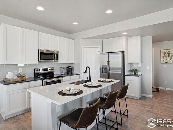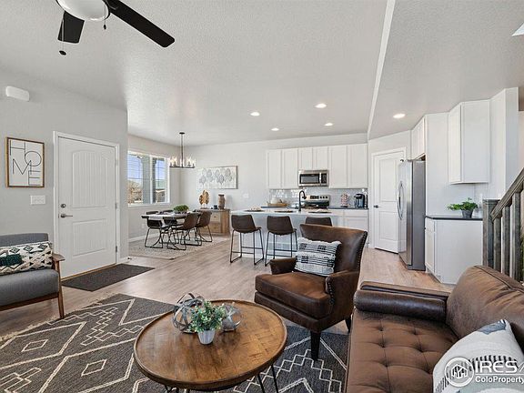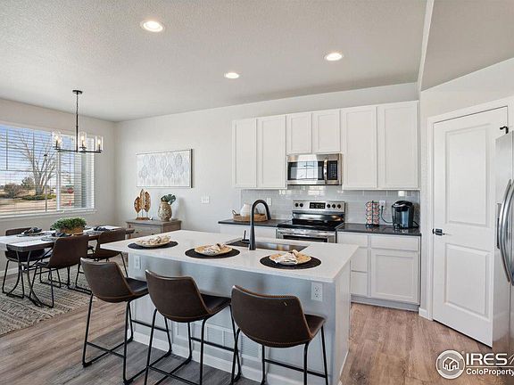 This beautiful lock-and-leave townhome boasts a bright, open floorplan with high-end finishes throughout, including quartz countertops, stainless steel appliances, a custom-tiled backsplash, laminate wood floors, and a convenient attached oversized 2-car garage. The spacious primary bedroom is a sanctuary in itself, complete with an en suite showcasing a meticulously tiled walk-in shower, double sinks, and a spacious walk-in closet. For your convenience, the upper level houses the laundry, making chores a breeze. The full unfinished basement offers ample storage space or the potential for future expansion. All kitchen appliances and window coverings are included, adding to the ease of move-in. Relax and reclaim your time with the assistance of the HOA, as exterior maintenance tasks are taken off your chore list. As a Brookstone resident, you'll enjoy exclusive benefits, such as an annual complimentary aquatics pass for Milliken Pool. This pass provides access to a wide range of activities for the entire family, including access to swim lessons, senior water walking, open swim, and more! Located just moments away from Milliken's premier Centennial Park, you'll have the opportunity to enjoy the lake, go fishing, unwind at the Milliken pool, let your dog roam freely at the dog park, play frisbee golf, or make use of the Thompson Rivers Park and Rec center facility. The convenience extends to education, with two exceptional charter schools within walking distance, highlighting how the Brookstone townhomes by Windmill Homes cater to the needs of the community.