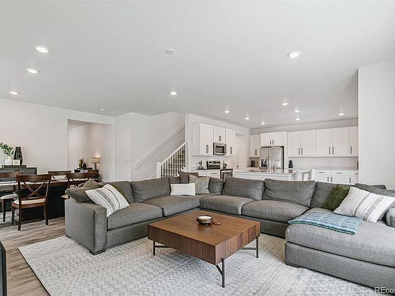 Get the best of both worlds with nearly new construction but with over $35K of landscaping, fencing, and window coverings already done for you! Move in right way plus avoid all that annoying construction mess surrounding you! This home boasts 4 bedrooms plus a dedicated office, and a wide-open family room/formal dining/kitchen/eat-in area. The kitchen has sleek white cabinetry, quartz counters, stainless appliances, a massive island, and cabinet space galore! The primary suite is massive, with an en-suite bath featuring double sinks, a walk in shower, and a large walk-in closet. Three additional bedrooms (two with walk-in closets) plus a full bath and convenient upstairs laundry round out the upper level. Outside, the desirable corner lot is fully fenced, beautifully landscaped, and has an amazing covered deck that is perfect for entertaining. Beautiful MOUNTAIN VIEWS from your deck, the family room and the primary bedroom and bath! All appliances remain, including the refrigerator, washer and dryer. Located in the sought-after Boulder Valley School District, the neighborhood has miles of walking trails and wonderful community amenities including a pool. clubhouse, parks, and more. Finally, the full unfinished basement provides endless potential. Located just a short 30 minute drive from DIA, the community is close to downtown Lafayette, the charming downtown Erie, and The Great Bark Dog Park. What a wonderful opportunity to own a gently lived-in home that feels brand new, without the wait for construction or the additional costs after move-in. Don't miss it!