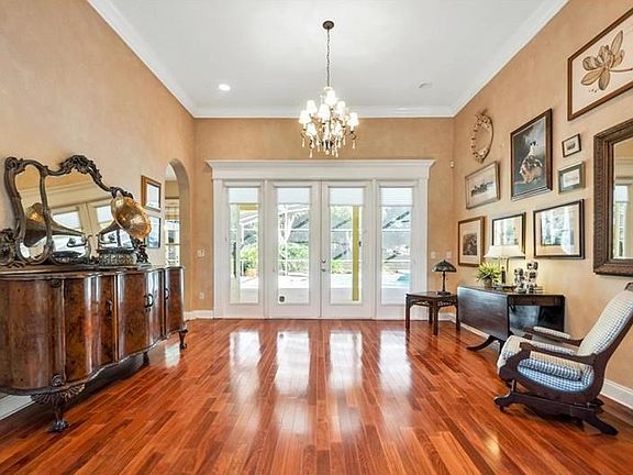 Located within the town of Windermere and over 1/2 acre lot this home is a must see! This 4 bedroom and 3 bath pool home features a NEW roof, NEW exterior paint, NEW air conditioner, and is freshly landscaped. Sellers offering $7500.00 credit to buyers. Features include soaring ceilings, crown molding, arched doorways, art niches, French doors and wood floors! Formal living room features wood floors and French doors leading to the lanai. The formal dining room has wood floors, chair rail, plantation shutters and recessed area for hutch. The kitchen boasts 2 pantries, breakfast bar, desk area, under counter lighting and lots of counter space. The breakfast nook with 3 windows overlooking the lanai keeps the rooms nice and bright. The oversized family room has a built in wall unit with tons of storage, gas fireplace, plantation shutters, wood floors and French doors. The master bedroom suite is spacious with a sitting area, wood floors and 2 closets. The master bath has dual sinks, walk in shower and garden tub. There are 3 additional bedrooms with wood floors. Two bedrooms share a Jack and Jill bath and the 3rd bedroom is by the pool bath. The lanai and pool are screened and the park like backyard makes this a great place for entertaining. This popular community is within easy walking distance to Windermere Elementary and has all the amenities that the Town of Windermere has to offer.