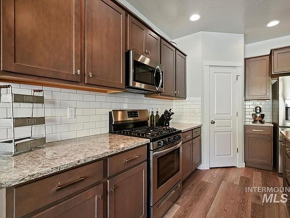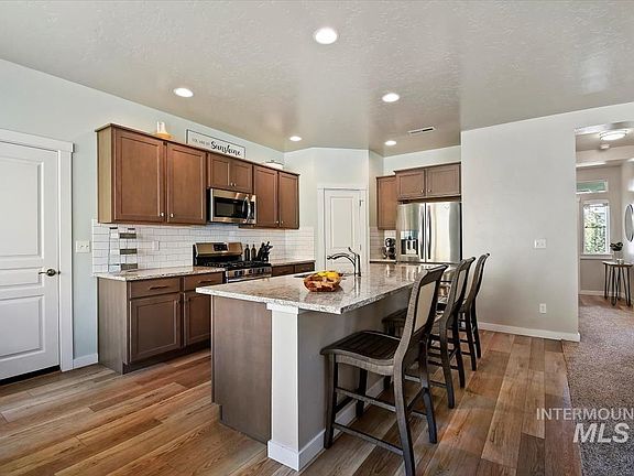 This exquisite home seamlessly blends modern style, generous living spaces, and a peaceful backyard retreat without any rear neighbors. Step inside to be greeted by a stunning interior featuring an open floor plan with lots of natural light. The gourmet kitchen is a chef's dream, boasting stainless steel appliances, modern cabinetry, and sleek countertops. Unwind in the luxurious master suite, complete with a spa-like ensuite and a spacious walk-in closet. The backyard oasis is an entertainer's delight, offering a covered patio and ample space for outdoor activities. Nestled in a sought-after neighborhood, this residence is conveniently located near top-rated schools, parks, and a variety of shopping and dining options. Don't miss the chance to own this remarkable home. Schedule a showing today and experience the epitome of comfort, style, and tranquility in Eagle, Idaho.