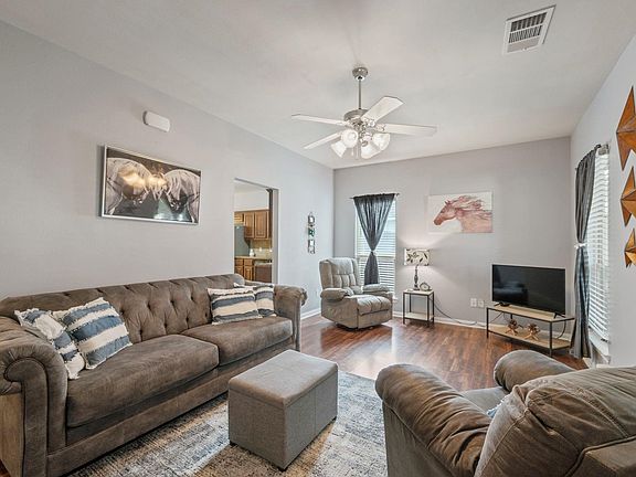 Must see this charming 3 bed 2 bath home with a spacious covered front porch ready for a relaxing evening. It includes a separate living room but an open dining room and Kitchen Combo spacious enough for hosting and entertaining. With a covered patio, this back yard is private and backs up to a green space with lots of trees behind the fence line. Call to tour this well maintained home now!