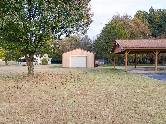 Location, Location! Country setting on +/- 1 acre, 2 living areas, kit. w/ gas range, large living room, new H/A unit (3 yrs old), well for watering, formal dining! Good investment property! Newer roof, 3 car carport, new 20x30 insulated shop w/ electric & gas heater, overhead door. Corner lot features huge trees, a garden spot, room for another house or mobile home, only minutes to Greenwood & Fort Smith! SF per tax records.