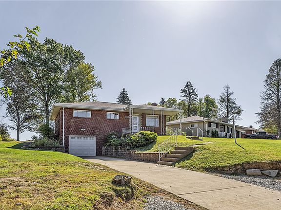 All Brick Ranch with LOADS of Original, Mid-Century Modern Features & Character Paired with Modern Amenities & Mechanical Updates! Enjoy 1 Level Living on Almost 1/2 Acre in Great Location, Close to Hospitals, Shopping, Restaurants & Routes 48/22/376/76. Updates in Past Year Include NEW Roof, NEW HVAC, and NEW Lighting & Custom Blinds Throughout. Covered Front Patio Entry into Open Concept Living/Dining Room w/Original Stone Fireplace, Beautiful Coved Plaster Ceilings, and Wall of Wood & Glass Fixed/French Doors Leading to Rear Patio and Completely Level, Usable Yard. Hardwood Floors Flow From Living/Dining into Hallway and all 3 Bedrooms, and New LVP Floors Enhance the Kitchen & Full Bath. Kitchen Features Original Birch Wood Cabinets and Copper Drawer Fronts & Pulls, Complemented by New Granite-Look, Vangura Counters, Samsung Induction Stove & GE Cafe Dishwasher. Bedroom 3 Converted to Laundry w/New Washer/Dryer. Huge Basement Ready to Finish & Oversized 1 Car Garage w/Workshop Area!