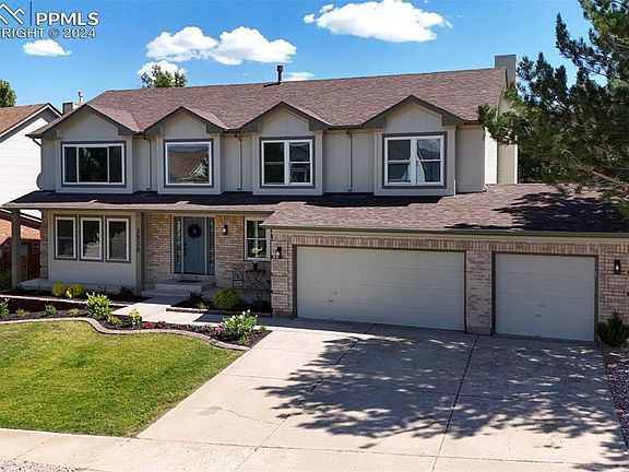 This newly-remodeled 5-bedroom, 4-bathroom home offers the perfect blend of style and modern convenience. Outside, you'll be charmed by the fully-landscaped yards, mature trees and flowers, and covered front porch. The privacy-fenced backyard offers the perfect oasis for entertaining with its oversized TREX deck. Once inside, you're greeted by a thoughtfully designed and renovated interior. The spacious main level offers large windows and brand new LVP flooring throughout; a vaulted foyer with an exquisite modern chandelier; a formal living room; a bright dining space; a cozy family room with fireplace and built-ins; and a kitchen that's a haven for any culinary enthusiast: stainless steel appliances (including double ovens), a pantry, sleek quartz countertops, and an oversized island that provides extra prep space. A private office and a tidy powder room complete the main level. Upstairs, the primary bedroom is a beautiful retreat with vaulted ceilings, mountain views, and a stunning attached bathroom. Three more well-sized bedrooms, a full bathroom, and the laundry room are also on the upper level. The finished basement is loaded with potential and offers versatility to meet your needs. In addition to another family room, the basement also includes a wet bar/kitchen with granite countertops; a 5th bedroom with double closets and an attached full bathroom; and a game area. There are thoughtful details showcased throughout the entire home, all of which add up to the comfortable and sophisticated lifestyle you're searching for: new LVP and carpet flooring; new modern lighting; fresh paint; four remodeled bathrooms; air conditioning and a house fan; custom wrought iron railings; wired for surround sound; a new roof; and a back deck that provides additional outdoor living space. Located on nearly 1/4-acre in a D-20 neighborhood with no HOA dues, you'll enjoy a sense of community and convenience with nearby amenities & quick access to anywhere in Colorado Springs.