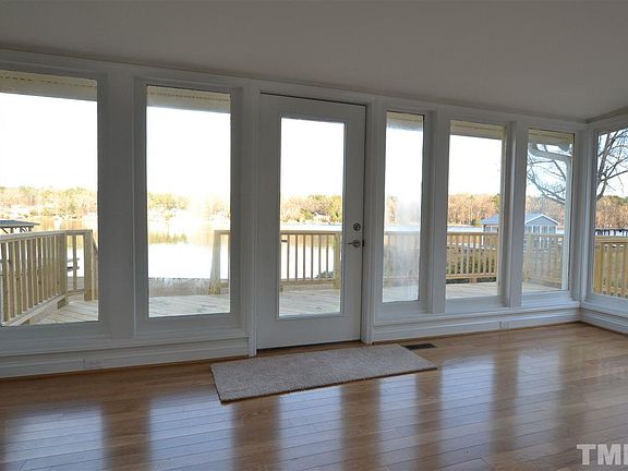 Modern lake house w/all new bells & whistles-new roof, new flooring, paint, counters, baths, HVAC-whole new house, including exterior deck & private dock with boat lift. Enjoy Bunn Lake from this darling cottage w/panoramic views from living room, kitchen, sunroom & master. Completely remade kitchen w/new appliances, hardwoods in foyer, living room & sunroom. Master has attached flex room (plumbed), 2 closets (1 walk-in). Gorgeous master bath has walk in shower. 2nd bath has oversized tub. 2 car carport.