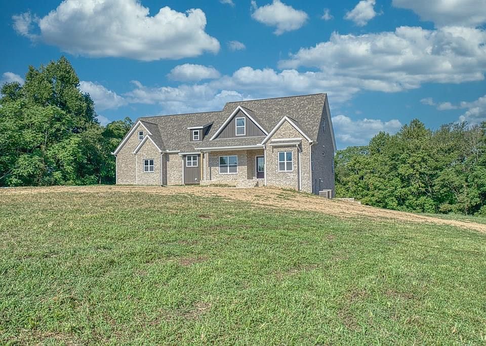 Enjoy personal sunsets in this NEW brick home w/basement and barn nestled on 15 ACRES in the Tennessee hills. Custom features throughout: 10 ft ceilings, filled w/natural light on main level and in basement, all LVT flooring, open floor plan with white shaker cabinets, white granite, island, gas stove, double oven. Kitchen/family room opens to a composite deck for entertaining. Dining and living space wired for televisions. Main level features split bedroom plan. Master has Trey ceiling, tile double shower, double vanity, walk-in closet. Upstairs bonus w/ bathroom serves as perfect extra sleeping space for teens, guests or home office. Walk out Basement w/ bathroom, storm shelter, utility garage for lawn mower. A host of custom extras including Generac (partial home system/covers essentials), extra water spouts for watering, pre-wired internet, attic storage and much more. NICE barn for your cows, horses, chickens or goats! Fiber optic internet. NEW construction completed 8/30/23.
