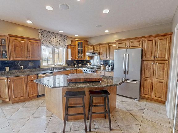 Absolutely STUNNING Custom Built Home On University Golf Course, Move In Ready. Over $100,000 worth of Stone/Granite/Marble Inside and Out. The first floor boasts 9 foot ceilings, with solid surface flooring throughout. Entertain in STYLE with a Gourmet Kitchen offering an abundance of cabinets, under-counter lighting, granite counter tops, table area, High End Viking Appliances & huge walk in pantry, plus a bonus pantry nearby. The adjoining Family Room has a gas log fireplace, with a separate Sitting/Living room nearby. Formal Dining room next too kitchen. 1st floor half bath. XL Luxurious Master Suite has an attached sitting room & a spacious master bathroom with jetted corner tub, tiled shower, make up counter, double sinks and XL Walk in Closet. Spacious bedrooms 2 and 3 share a full bath. Bedroom 4 and laundry down hall. Finished Basement has 9 foot ceilings & includes a Kitchenette with granite, appliances & eating bar, TV Area wired for Theater, Game Area with Custom Built Mallory 8 Ft Pool Table Included, 5th Bedroom & full Bath. BONUS Features: Wrap around porch, Private Patio Courtyard, Full Irrigation System, Heated 3 - 4 Car Garage with Upgraded Torsion Springs and Tiled Floor (Car Enthusiast Ideal Garage), Built-In Safe, Surround Sound Speakers throughout, Invisible Fence with 2 collars, and beautiful landscaping complete this home! Trane Furnace (blower upgraded 2018) & AC 2004 with Smart Home Thermostat 2015, NEW Roof 2018 with a 50 Year Warranty, transferable to new owners.