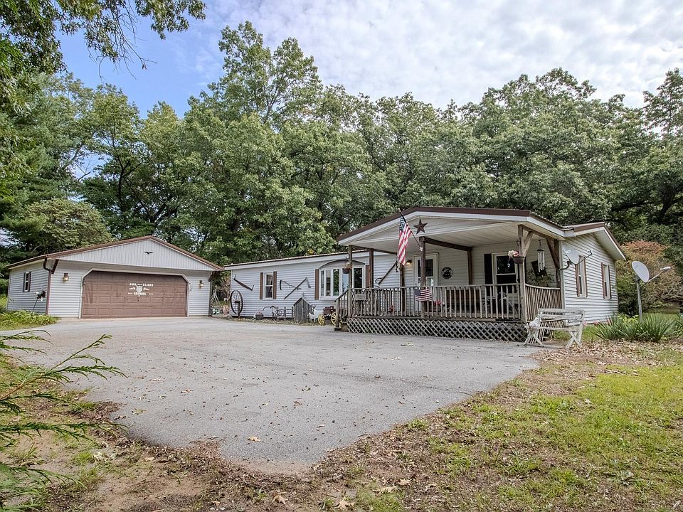 TOO MANY AMENITIES TO LIST - 1456 SF 3 bedroom 2 bath manufactured home on 5 beautiful acres of mostly wooded land. Home as all new windows, big kitchen, dining area and large living room. Outdoors is a great sitting porch, detached 2 car garage, asphalt drive, 24' x 32' pole barn and several smaller sheds. Hillside setting with no close neighbors and fantastic views. On County Road 1025 East just 2 minutes from US 30.