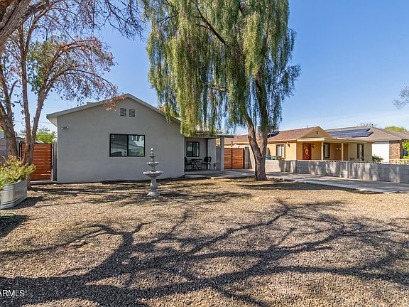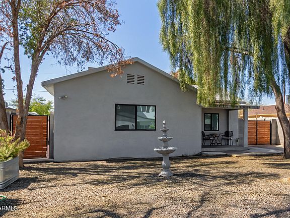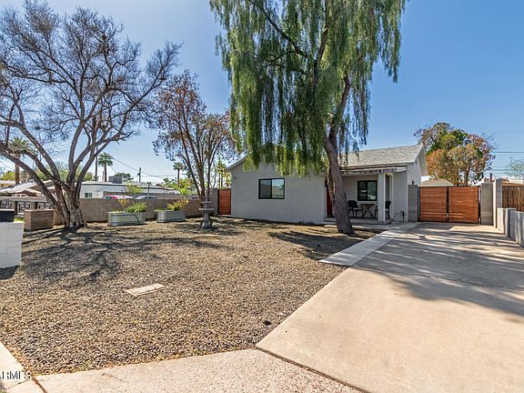 A fully remodeled 3 bed, 2 bath home in Phoenix is now on the market! Featuring charming curb appeal, an easy-care front yard, slab parking, RV gate, and a welcoming front porch, it's sure to be the home for you! Inside you will find a spacious dining & living area w/beamed ceilings, elegant wood-look flooring, recessed lighting, and crisp palette throughout. The kitchen is comprised of white cabinetry with crown molding, granite counters, herringbone tile backsplash, and all the stainless steel appliances you'll need for home cooking. Relax and unwind in the primary bedroom, boasting a mirrored closet and a pristine ensuite for added comfort. The separate guest house showcases a generously sized living room and a 3rd bath and measures approximately 395 SF. Also including a large backyard w/tons of potential to get creative, this home has it all! Act now before it's gone!