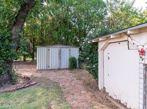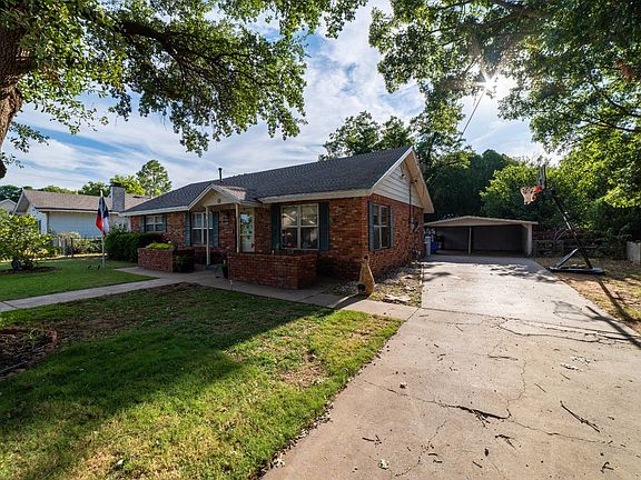 Nice, brick home in a good neighborhood All new windows Kitchen appliances except refrigerator will stay with the home Tile countertops Large pantry Laminate floors in the living room, dining room, kitchen, laundry room and sunroom Crown molding Tile floors in both baths All electric Fenced backyard with storage building Storage room in the front of the carport also Paved driveway New gas lines Water well that needs some work