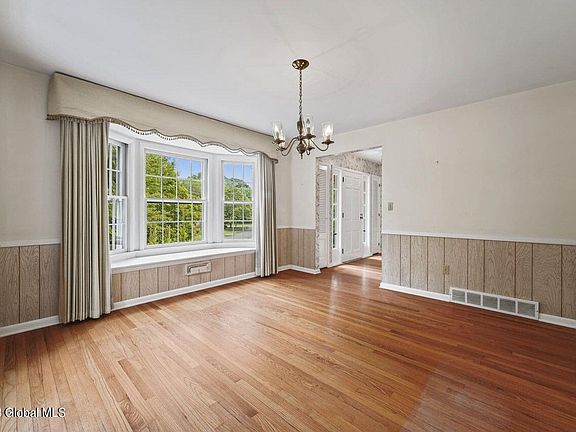 Mid-Century home on a quiet street with a large private back yard, slate-floored screen porch, wood-paneled den with fireplace, attached 2-car garage and garden shed. 5 BR, 3.5 BA. Hardwood floors. Semi-finished basement. Generac standby generator. Niskayuna schools.