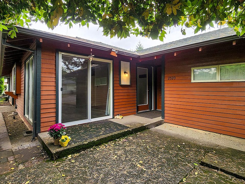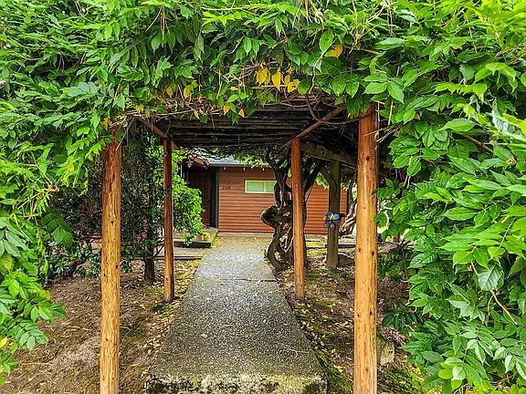 Motivated seller! Charming one level on a flat lot with courtyard style entry. Oversized windows in living area overlook the lush park and open green space across the street. Lovely kitchen with walls of windows and huge slider door that opens to the courtyard. Perfect for indoor / outdoor entertaining. Kitchen cabinets refinished and new quartz countertops in 2021. Bedrooms are spacious and on separate ends of home providing privacy. Fenced back yard and large shed for hobbies or extra storage. 50 year roof installed 2022, Fresh exterior paint 2022 and new garage door 2023. New flooring/carpet 2021. New ceiling fans, new sliding glass doors and kitchen window. All new interior paint 2023. All appliances stay. Come make this your new home!