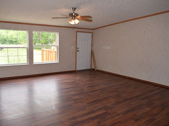If you have been thinking of owning a home in the country this could be the one. Sitting on one acre is this triple wide manufactured home. It is partially fenced and hide behind many types of trees including but not limited to willows, oak and apple trees. You could have barnyard animals just out the back door. There is an enclosed porch off of the 2nd living room doors. You can sit out there and look out into an open field. In the yard you have a storm shelter, multiple sheds for storage and a carport. When you enter the home the space is unreal. The home is open and has storage at every turn. The cabinets and counter space in the kitchen allows for those large dinners with room to get around. Check out the second living room with a fireplace. The list goes on and on.