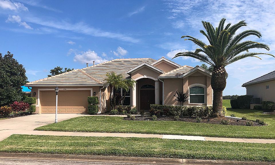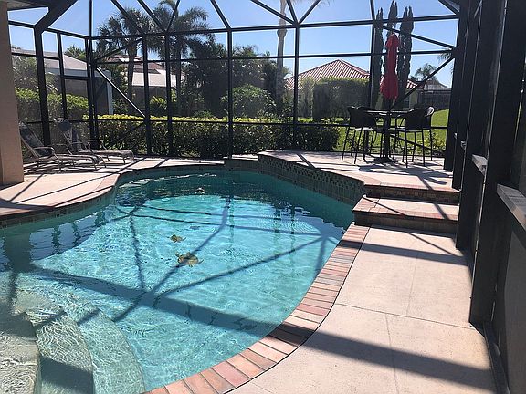 If you are looking for a beautiful and spacious house in a gated-community to call home, look no further. This 2,333 sq. ft. home features 4 bedrooms, 3 baths, a split floor plan and a lanai pool with all new equipment - heater/pump. On an oversized lot, the home has a water view, overlooking the aqua range lake at Bobcat Trail. This home features a large kitchen with cherry wood cabinets, a large pantry, solid surface countertops, built-in desk, a butler's pantry and all new stainless steel appliances - refrigerator, oven, microwave and dishwasher and new washer/dryer. The master suite has sliders to pool with tray ceilings, newer plush carpet and double walk-in closets. The master bath has dual sinks, walk-in tiled shower and large garden tub surrounded by two large windows for natural light. The left wing of the house has 2 bedrooms and 1 bath while the rear of the home has the 4th bedroom and pool bath. The new tile roof was replaced last year, with new gutters and downspouts. This home is equipped with remote controlled hurricane shutters for extra added protection on the windows except for the front windows which are high impact windows rated for 135 MPH winds. Newly replaced water heater and A/C system and there is a well for lawn irrigation system. Spacious 2 car garage with attic storage. House is FSBO - seller will offer buyers' agent commission.