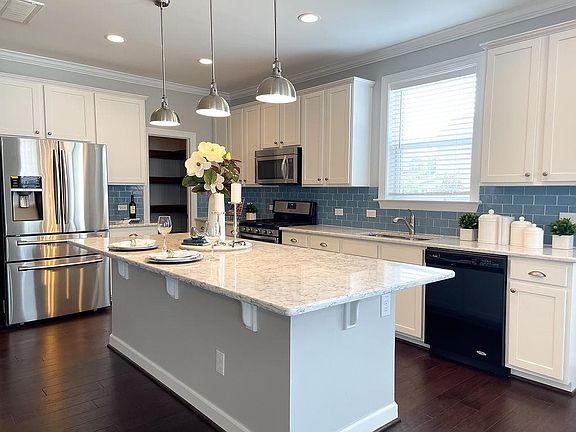 This miraculously maintained 4 bed 3 1/2 bath home boasts beautiful landscaping, a gas line for your grill, a fenced in yard and a deck with closed off storage underneath. Inside you'll be welcomed by a spacious OFFICE with beautiful wainscoting and glass french doors and continue to an open concept kitchen with quartz countertops, stainless steel appliances, a GAS stove and a large island overlooking the family room with a COZY gas fireplace. Truly a must see!