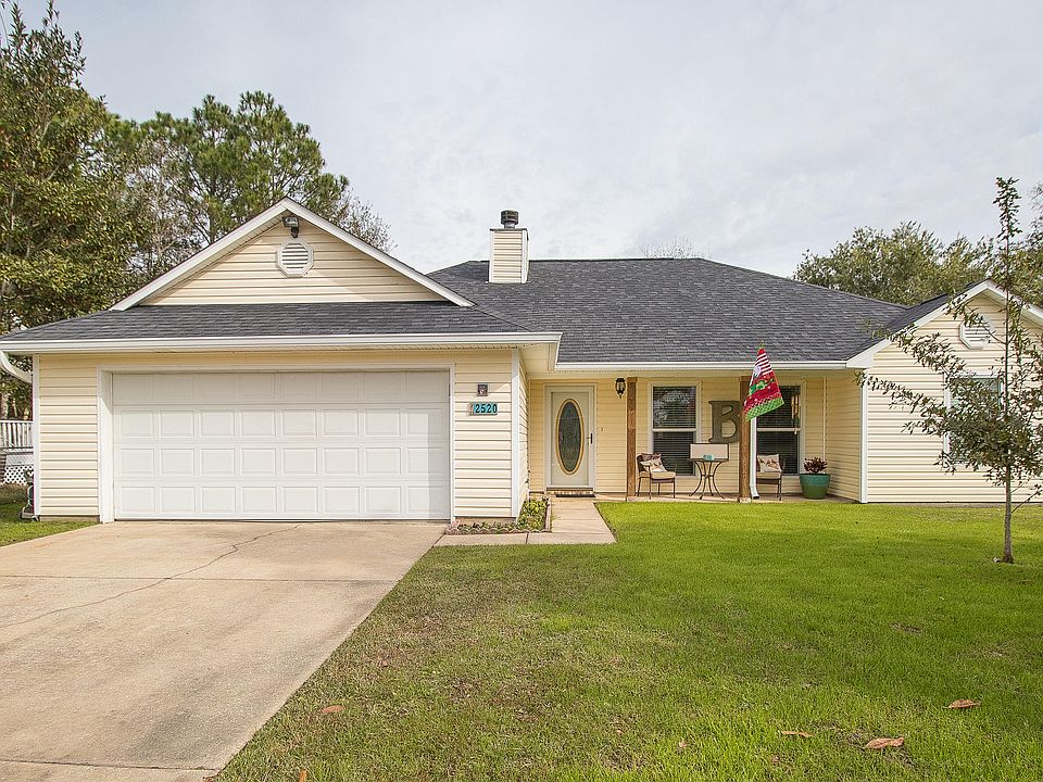 Charming, welcoming, quaint...the list goes on!!! This house is absolutely precious from the moment you drive up! Home features vaulted ceilings with an open kitchen/dining and living room concept, split bedroom floor plan, laminate and tile floors, fireplace, his and her walk in closets, fenced yard, gutters, storage building and a rocking chair style front porch! It is absolutely perfect for your family and won't last long! Great location to shopping, schools, etc! This area qualifies for zero down payment, too!