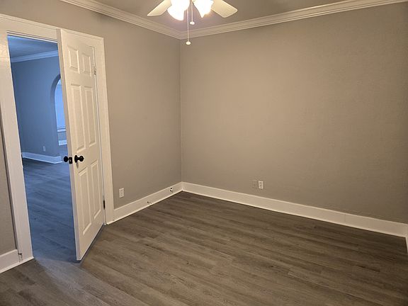 Updated home with character, Extra-large bathroom with jetted tub and walk-in shower. Oversized corner lot plus an extra lot if desired. Luxury Vinyl Plank flooring and fresh paint throughout. Built in storage. Front bedroom or office with lots of windows (no closet). Large dining room with arched opening into living room with fireplace. Butcher block counters, large Farmhouse sink, stainless dishwasher and range, microwave; Large covered front porch. Detached garage plus storage building (both not updated). Fenced yard and large trees. Pets OK with extra deposits.