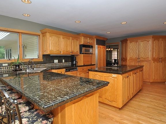 Your own private paradise! This spectacular 4 Plus Bedroom 4 Bath home offers three levels of living space with picture perfect sunrises and sunsets atop the second highest hill in the area. Create a main floor mother-in-law suite off the open concept kitchen featuring granite counters, tile backsplash, and an extensive island with custom cabinetry. The Fireplace offers both Natural and Gas heat with a blower in the vaulted great room. A formal dining room and living room are great for more entertaining space. The unbelievable master suite offers a fireplace, vaulted ceilings, floor to ceiling windows with vista views from every angle. The finished lower level boasts two wet bars, a wine cellar, bathroom, and walk out to a patio area.
