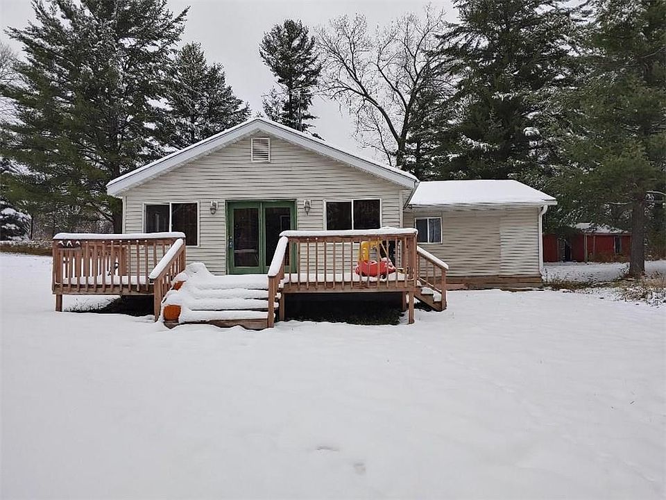 Ranch style home just a few miles North of Cumberland. Located on almost 6 acres with frontage on a 20 foot deep pond with pan fish. 3 season room and a good sized deck. 2 car detached garage and a storage shed. Drilled well and a mound septic system. 3 bedrooms, 1 bath and a large laundry room. Home has been mostly updated and with a few finishing touches to make this your up North home or get away spot.