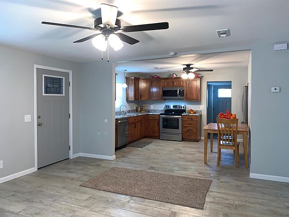 Great starter or investment property. Nothing to be done except move in. 2 Bedrooms, 1 bath with open living area and kitchen. New HVAC unit, new hot water heater, new PEX plumbing, new wiring, new windows, new roof and decking, new siding, new appliances, flooring, cabinets - PLUS more! You won't be disappointed. Fenced lot. Storage building stays.