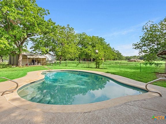 Beautiful property in Academy ISD, low property tax rate area. 2400 sq ft Metal Workshop, Gunite inground swimming pool with cool deck coating on the patio. A large Cabana. A tree covered almost 2 acres. This 3/2 home has been totally remodeled, new kitchen, new primary bath, new paint and floors. Home and property are in excellent condition, ready for you to move in. Home also has a 2 car garage and the pool is serviced weekly. Checks all the boxes, call today! This property has co-op water and a well. Plenty of room for an RV a garden and all your hobbies.