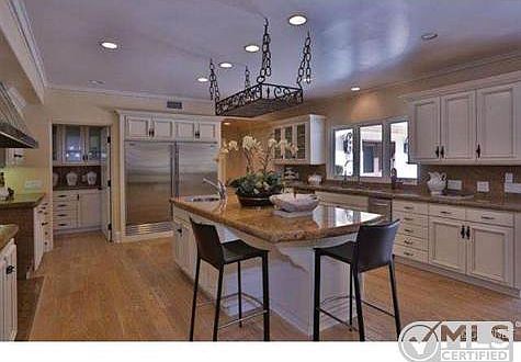 This beautiful Tuscan estate features private, lushly landscaped grounds, a stacked stone pool and spa with multiple waterfalls, covered BBQ pavilion, mature trees, a putting green, and lots of grass. Interior features include stone & hardwood floors, granite & marble counters, volume, open beam ceilings, and seven en-suite bedrooms, including the master suite with dual stone baths, dual closets, & walk-out balcony. The expansive, center-island kitchen opens to the family room with mirrored wet bar, and huge picture windows flood the home with natural light. As well, there is a circular driveway, 4-car garage with storage, lots of off street parking. This home is immaculate throughout.