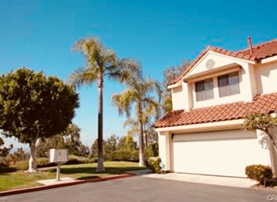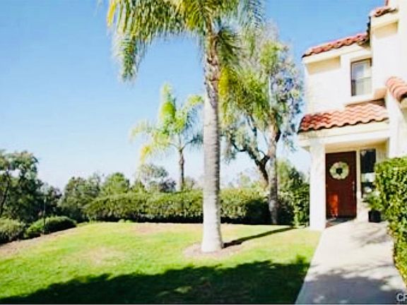 A beautiful home with 3 bedrooms, 2/5 baths on 3 dramatic levels at end of cul de sac, corner location on top of a hill with panoramic sunset views. Upgrades throughout include marble tile flooring and fireplace, new carpet, new paint inside and outside, quartz countertops, remodeled bathrooms and kitchen (including hand blown Murano glass pendant lighting). Master bedroom located on second floor has beautiful views, even see the Disneyland fireworks every night while lying in bed! Dual walk in closets and the master bath has dual sinks and a walk in shower. Third level has two more bedrooms, one currently used as an office with built-ins inside the closet. Art niches throughout, additional custom lighting, ceiling fans and updated electrical outlets in every room. The easy to entertain patio has incredible views and enjoy the built-in spa every night while looking at the panoramic night light views! Easy walk to hugh park, Association pool, tennis and basketball courts, plus more. Owner pays for HOA and Gardner