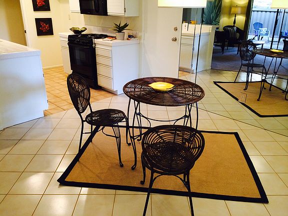 Wonderful two bedroom, two bath single story, end unit with large, private, enclosed brick patio. Rarely on the market and one of the best in the Tierra Vista tract, this home includes easy access attached garage with plenty of storage and indoor laundry area. Open floor plan with two roomy master bedroom suites perfectly separated by large living area.Kitchen has breakfast bar and dining nook which all opens to light, bright living room.Beautifully upgraded with new wood tile flooring through out the home including both bathrooms, new hardware, paint and light fixtures .Large private brick patio enclosed with new fencing and gate access is absolutely perfect for entertaining or relaxing! Homeowners will will enjoy the private pool and spa, just steps from the home. Beautifully maintained complex with plenty of guest parking. Conveniently located close to schools, shopping, dining, lake activities and walking trails.