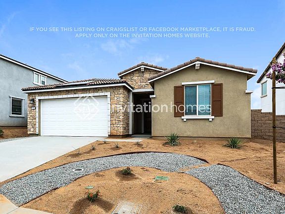 Lease this home and get more from Invitation Homes professional property management. This home comes fully loaded with quality amenities, must-have services, high-end tech and 24/7 emergency maintenance. Your estimated total monthly payment is $3303.30. That covers your base rent, $3245.00 + our required services designed to make your life easier: Air filter delivery ($9.95), Smart Home with video doorbell ($40), and Utility management ($8.35). We've built value into your lease with ProCare it's free! Our team of qualified professionals will take care of your home maintenance while you focus on the things that matter. And you get access to our exclusive resident offers with discounts to some of our favorite brands. Apply for select homes by 1/24 to get your first month of base rent free. *Base rent does not include Smart Home services ($40), internet package (up to $85), air filters ($9.95) and utility management ($9.95) & any other optional fees you may opt in to. This home is part of Cimarron Ridge, a thoughtfully planned community. Learn More about what Cimarron Ridge has to offer. Discover Cimarron Ridge, a vibrant Menifee community of newly built 4 and 5-bedroom homes equipped with solar technology and a pet-friendly, fenced backyard. Each home features modern touches like granite countertops, stainless-steel appliances and electric-vehicle plug-ins. With stunning mountain views and proximity to Canyon Lake, Cimarron Ridge offers the perfect blend of comfort and convenience. At Invitation Homes, we offer pet-friendly, yard-having homes for lease with Smart Home technology in awesome neighborhoods across the country. Live in a great house without the headache and long-term commitment of owning. Discover your dream home with Invitation Homes. Our Lease Easy bundle which includes Smart Home, Air Filter Delivery, and Utilities Management is a key part of your worry-free leasing lifestyle. These services are required by your lease at an additional monthly cost. Monthly fees for pets and pools may also apply. Home Features and Amenities: Fenced Yard, Garage, Granite Countertops, Kitchen Island, Long Lease Terms, Luxury Vinyl Plank, New Construction, Open Floorplan, Pet Friendly, Primary Bedroom on Main, Recessed Lighting, Single Story House, Smart Home, Stainless Steel Appliances, W/D Hookups, and professionally managed by Invitation Homes. Neighborhood Features and Amenities: Golf Course, Lake, Park Invitation Homes is an equal housing lessor under the FHA. Applicable local, state and federal laws may apply. Additional terms and conditions apply. This listing is not an offer to rent. You must submit additional information including an application to rent and an application fee. All leasing information is believed to be accurate, but changes may have occurred since photographs were taken and square footage is estimated. Furthermore, prices and dates may change without notice. See InvitationHomes website for more information. Beware of scams: Employees of Invitation Homes will never ask you for your username and password. Invitation Homes does not advertise on Craigslist, Social Serve, etc. We own our homes; there are no private owners. All funds to lease with Invitation Homes are paid directly through our website, never through wire transfer or payment app like Zelle, Pay Pal, or Cash App. For more info, please submit an inquiry for this home. Applications are subject to our qualification requirements. Additional terms and conditions apply. CONSENT TO CALLS & TEXT MESSAGING: By entering your contact information, you expressly consent to receive emails, calls, and text messages from Invitation Homes including by autodialer, prerecorded or artificial voice and including marketing communications. Msg & Data rates may apply. You also agree to our Terms of Use and our Privacy Policy.